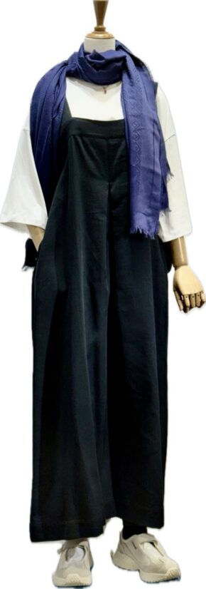 春はSpring コンビネゾン 大人カジュアルの強い味方 Wガーゼ ワイドパンツ のサロペット たっぷりと生地を使って太プリーツ仕上げ スカートに見えますが パンツラインです。 イン ビックシルエットラインのiBLUE...