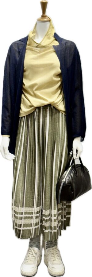 エスパンディ布 ドルマンVカーディ とテーパードワイドパンツ 袖と前たてのパーツはリブでコットン100% シルク 混のビックストール羽織って・・・ キャメルベージュのセットアップ インには絶対脱がない仕様の カーキ...
