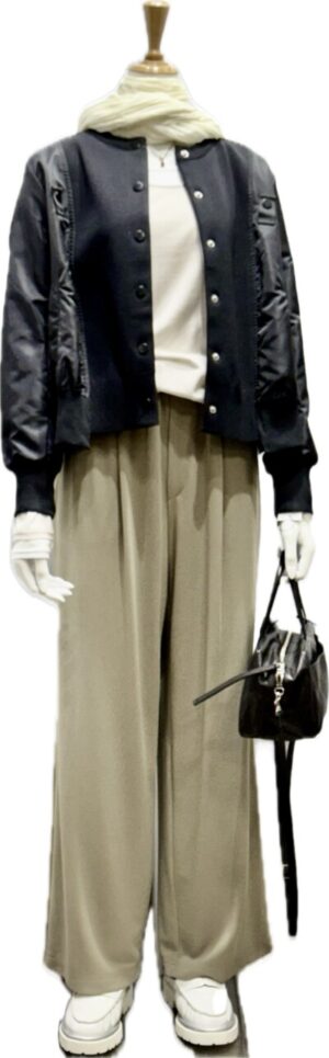 今度の連休・・・どこえ行きましょう・ この春は温度調整が必要コーディ ニットとサテン布のドッキングラインのMA1ブルゾン 着心地はカーディ 見た目はブルゾン 動きやすい サイドライン インT インにランニングがドッキ...