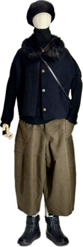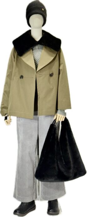 winterSALE30%off ファー付き圧縮ウールベスト&ウォッシャブルウールリブニット&ドラッとチェックコクーンパンツ お出かけに・・・小洒落なコーディ ブラックファー ベスト 今期らしく袖がフ...