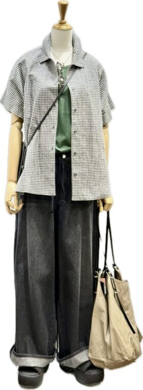 ワイドデニムでシャンとする。 なんでもない、ギンガムチェックのシャツ 羽織って・・ まあまあなビックシルエットラインのオーバーライン 総丈59㎝ 綿 67%. 麻 33% サイドライン 暑いのが我慢できずに 脱げる方は...