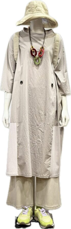 この夏フレンチシックな着こなし、ドッキングラインのチュニックワンピ 襟元と両サイドにカットソー布の切り替え 丁度動きのあるパーツにカットソー 体にまとわりつかない、ゆったりライン ほど良い配色 薄グレー&少し濃...