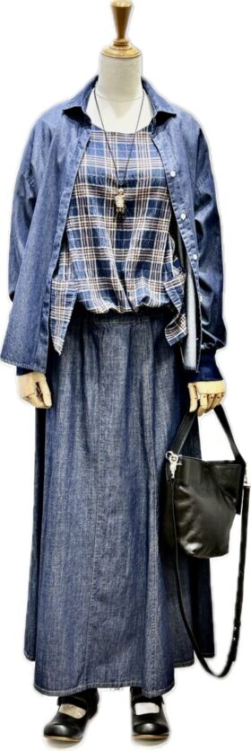 カジュアル綺麗・・・・新しさを試しながら すぎないバランス デニムシャツ シャンブレー シャツジャケット シャツカラー 袖リブのブルゾンライン 日除け兼クーラー対策 でもオシャレっぽっく・・・ オフショルダーラインの...