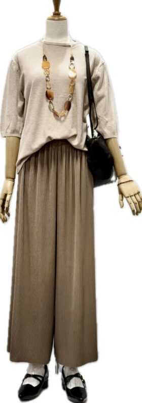 SUMMER SALE. 30%off サマーニット とプリーツパンツ Tシャツ感覚でコーディ出来ます。でもきちんとコーディ お仕事コーディに プライベートにも スカートにしか見えない プリーツパンツ 腰回りが大きく見え...