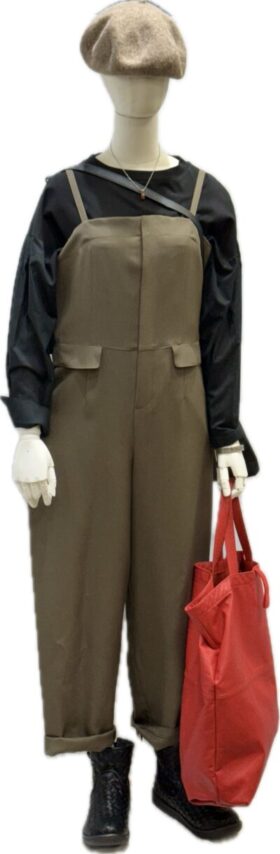 エレガントラインのサロペットパンツ カーキ色 新型ライン裾幅が少し狭いライン テーパードオールインワン 今までのラインとは少し違っていて もう一着増やしたいかな~ 前ジップ仕様 ラインが綺麗なのと着脱が...