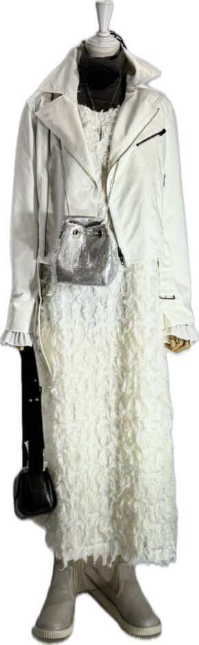 THANKS. 45 th Anniversary. 10/10~10/31 期間限定の展示です。 シンプルでも 何気に個性的なモードなコーディ 白ライダースブルゾン レザーの雰囲気でポリエステル布のライダース ...