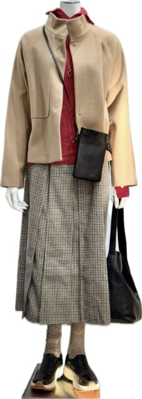 秋のお出かけコーディ インは エレガンスシックに・・・ ふふふ・・足元はNO NAMEの厚底スニーカー 目的地まではスニカーで、パンブス持参で 許されるならこのままでも 足楽 足長 足細が叶うシューズです。 ジャケッ...