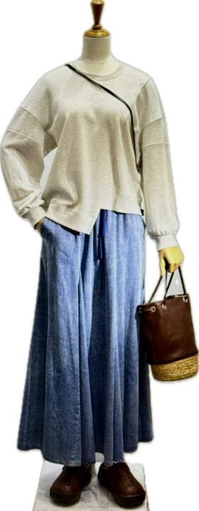 THANKS. 45 th Anniversary. 10/10~10/31 ブラウスラインのスエットとフレアースカート 写真ではわかりづらいのですが、 ラメ キラキラスエット 裾のイレギュラーのリブも腰回りをスッキ...