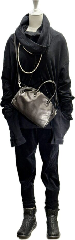オールブラックの装いモダンカジュアル モードラインの重ね着  カットソーのフーディ&セラーカラーにもなるジャケット コットンストレッチカットソーベロア布のジャケット 誰とも被らない デザイン これからのパーティ ...