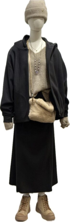 PRIORIOTY スエットみたいなラインのフーディショートコート 1枚仕立てのコクーンライン ブラック 重ね着するのに丁度いい・・ このままでも十分暖いけど、コートも羽織れます。 素材 ポリエステル80%. rayon...
