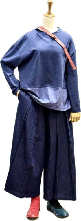 スタイルを作る。。。。humility 🇮🇹 デニムプリーツパンツ キレイとルーズの間を取れる・・・オチ感のある デニム スカートなライン 普通に真っ直ぐ立っていたら・・・ほぼプリツスカートにしか見えず デニムとは言って...