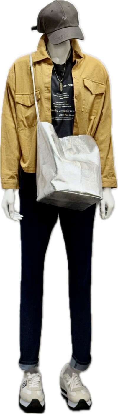 リバイバルラインスキニーパンツコーディ カラーデニムジャケット とロンT & スキニーデニム シャツとしても着れる 薄手のジャケット 芥子色 サイドライン イン +++&G ganosch ロンT 綿 ...
