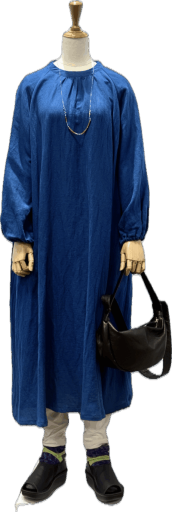 丈が長めのロング丈のワンピ、 辛口なナチュラルライン