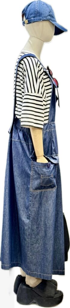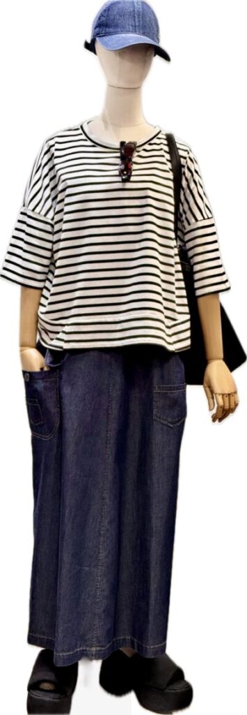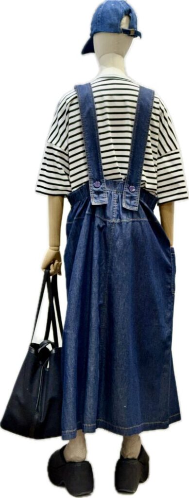 ドロップショルダーボーターTとシャンブレーデニムサロペットスカート