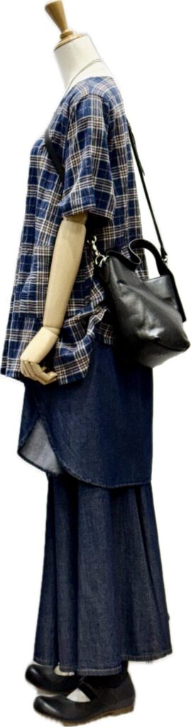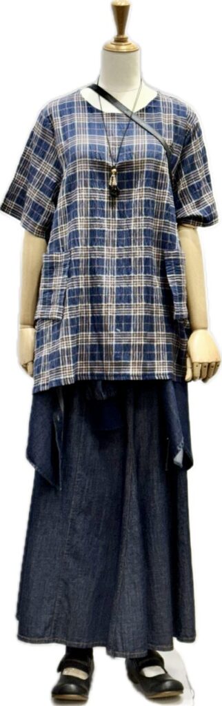 楊柳 チェック柄 チュニックブラウス コットン100%
