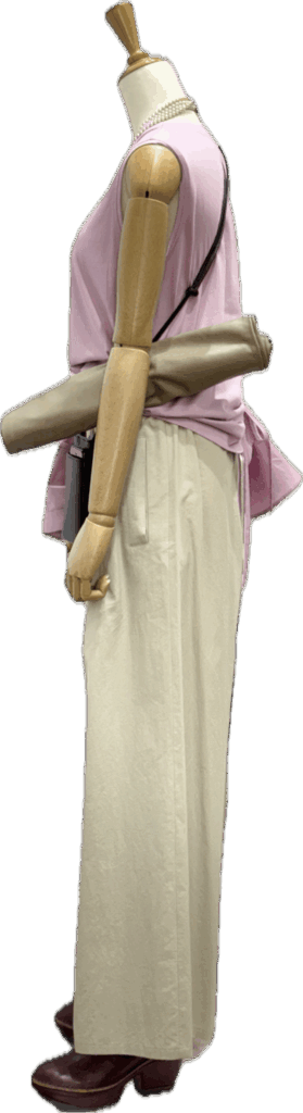 ワイドパンツ ウエスト幅広目のゴム でハイウエストにもジャストにも
