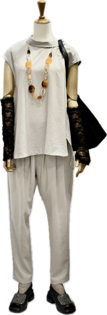 バンツ テーパードライン ショート丈のブラウスにもいいバランスに
