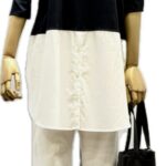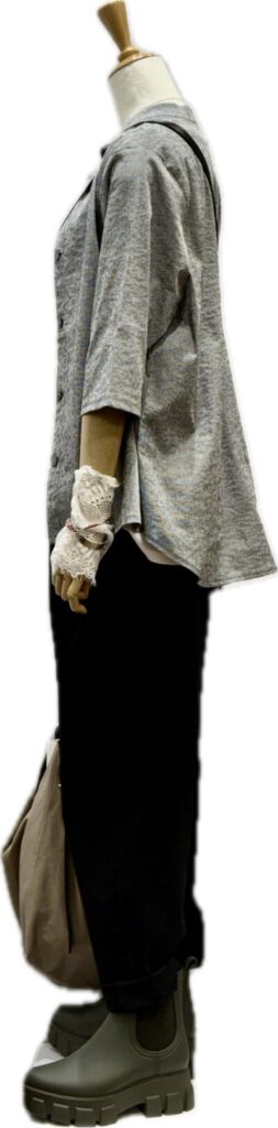 グレーカラーにもみえますがブラックです。ストレッチの効いた6分丈 バンドカラーシャツ
