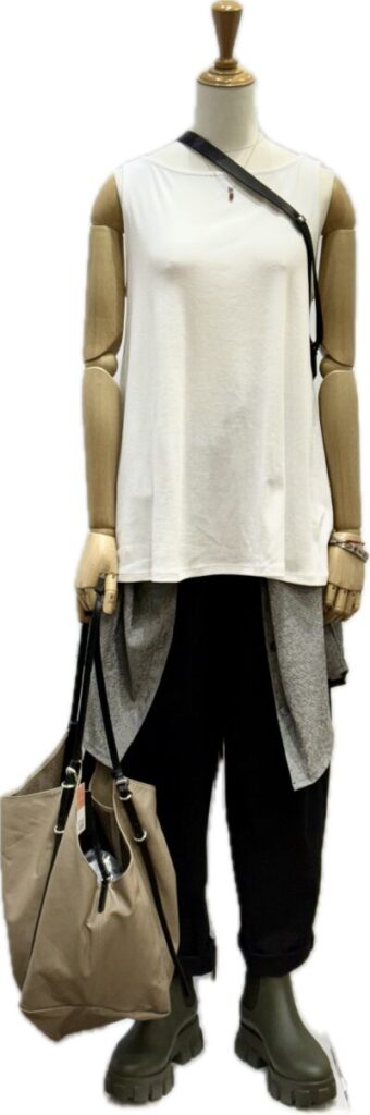 インはblancvertの長めのノースリーブT. ネック ボートネックラインで縦にあいていないので