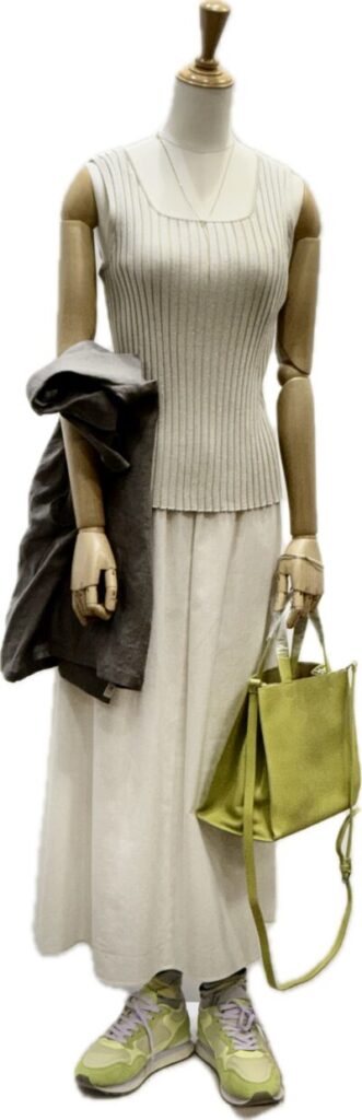 フレンチスリーブ と ラメノースリーブニット スカートもラメ仕様