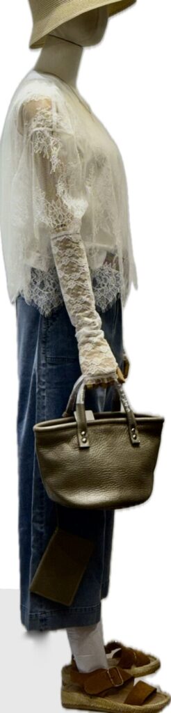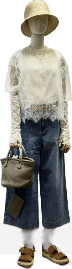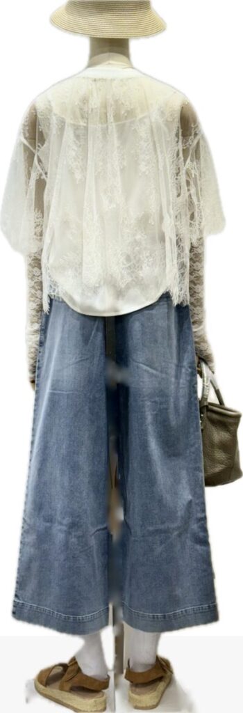 レース仕様のTブラウス&ソフトデニムガウチョパンツ
