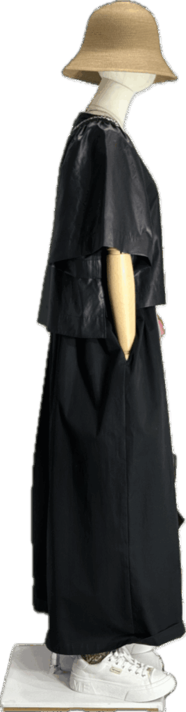 サロペットなのに・・・エレガントさ満載 ゆったりとどこも閉めずに