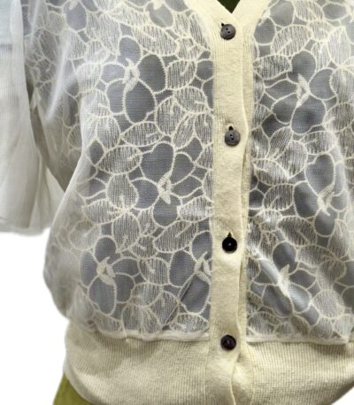 Vニットカーディ 本体は 麻55% 綿45% ニット レース綿65%. ポリエステル35%