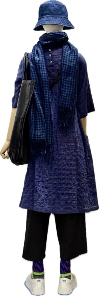 無地ですが、チェックぽっい・・・生地の凹凸感も体にフィットしないで、涼しいのと