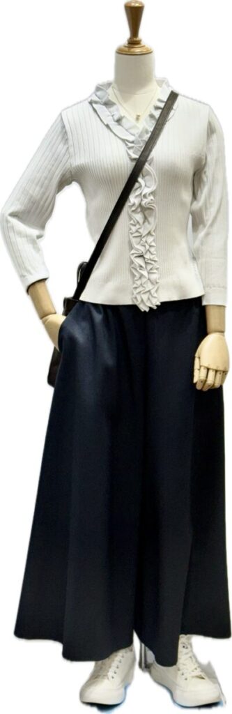 スタイリングに気張らない知性と甘さ 着慣れた素材