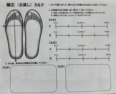 足のカルテを記入して オーダーします。