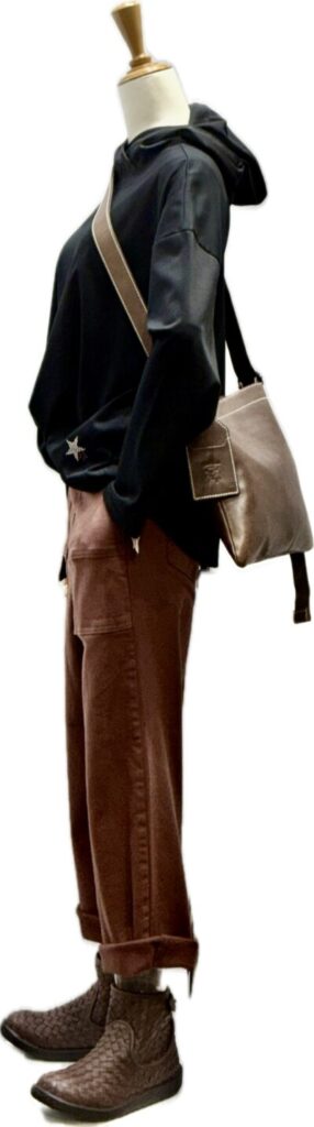 大人かわいいフーディT とコットンストレッチのワイドパンツ