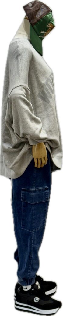 ポケット無しちょっと長いスエットがおすすめのラインです。