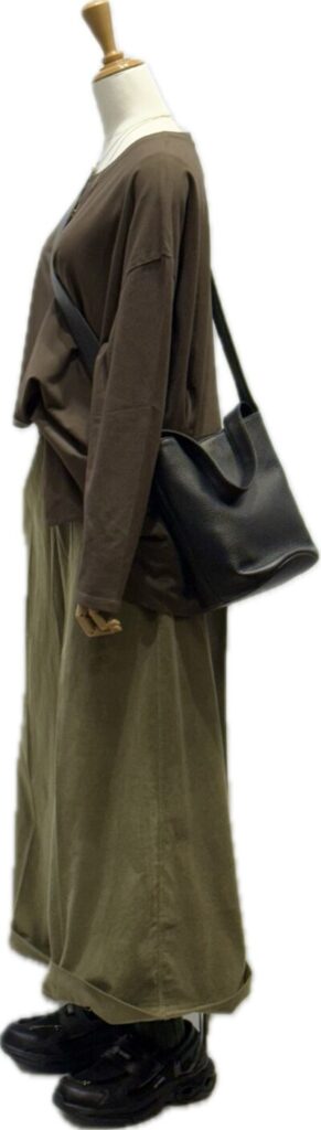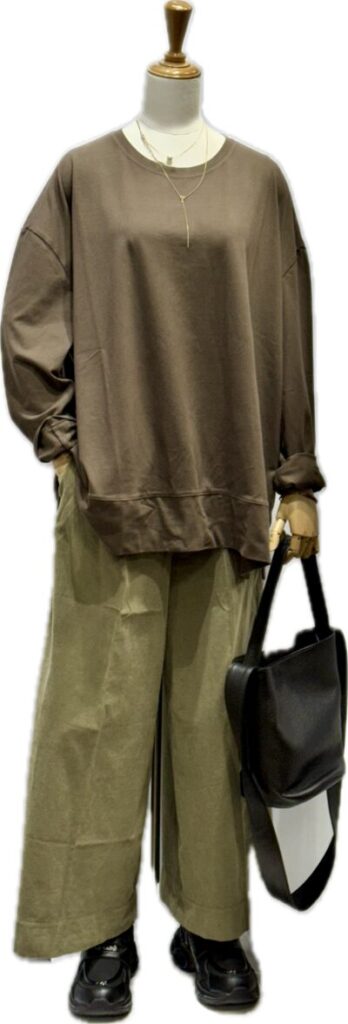 ふんわりとした質感でアースカラーの配色の渋みを軽減