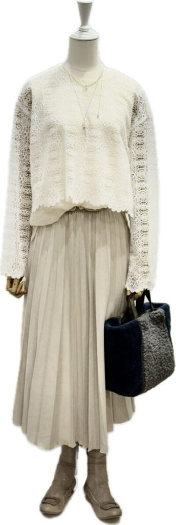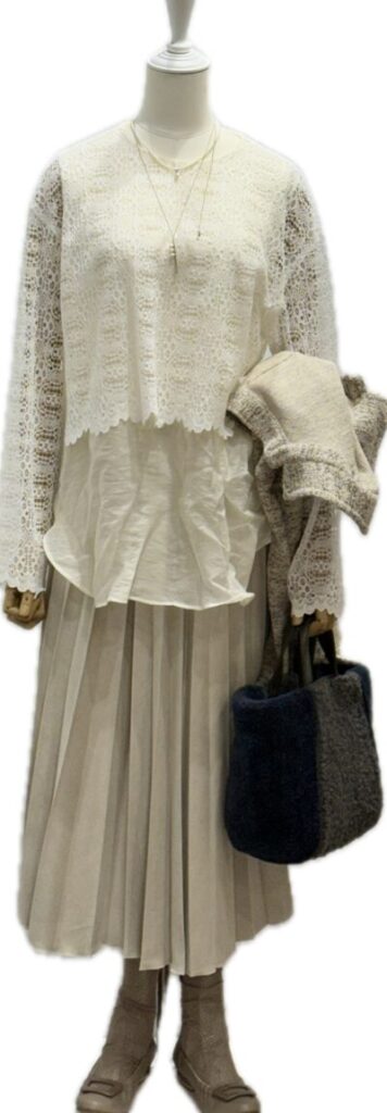 柔らかい白 ほんのり透けるレースとチュールのドッキング