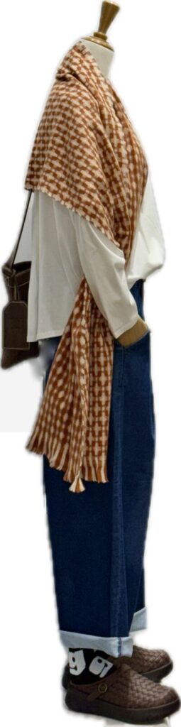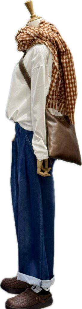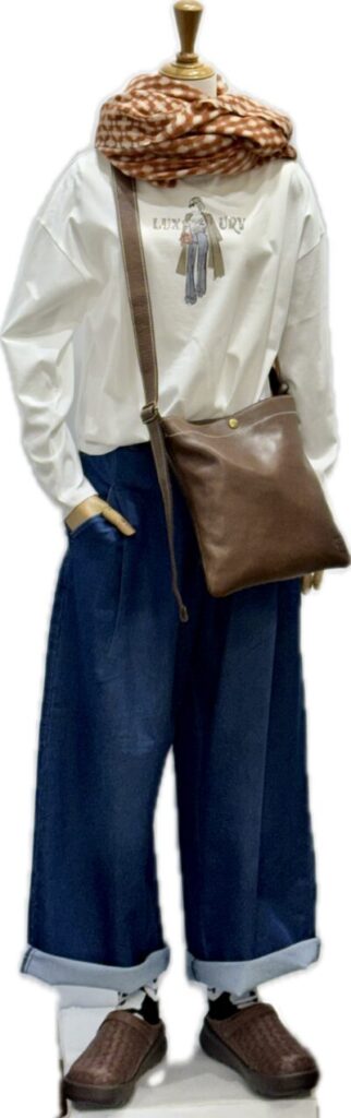 ちょうど良い薄手のロンTとソフトデニム ワイドパンツ