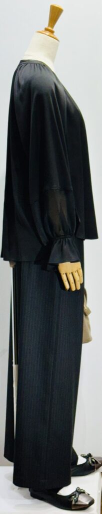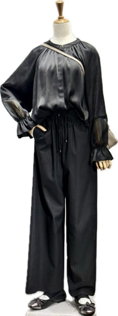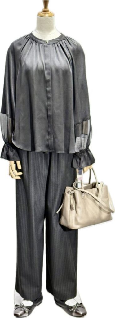 ポリエステルサテン布の ブラウス 袖ふあっとチュールのドッキング