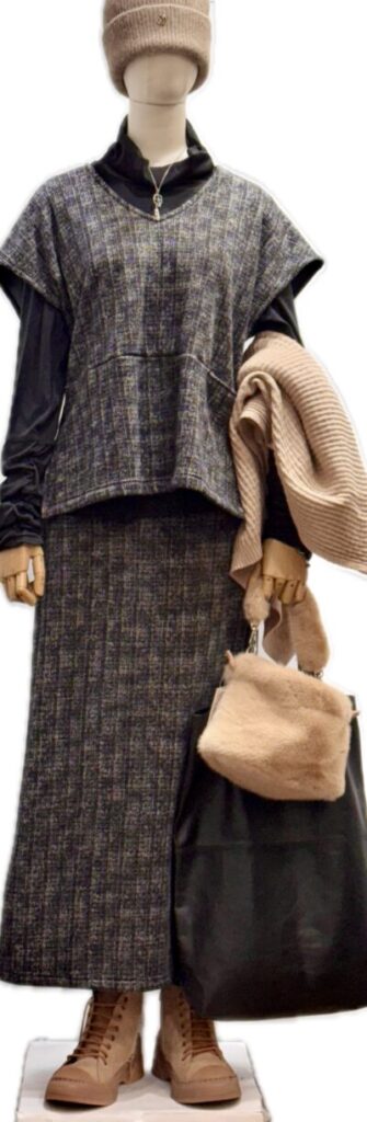 ジレとスカートのワンツーコーディのセットアップ