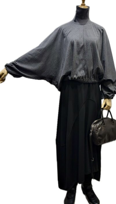 生地の落ち感 と パンチの効いたラインにもかかわらずシンプル見え