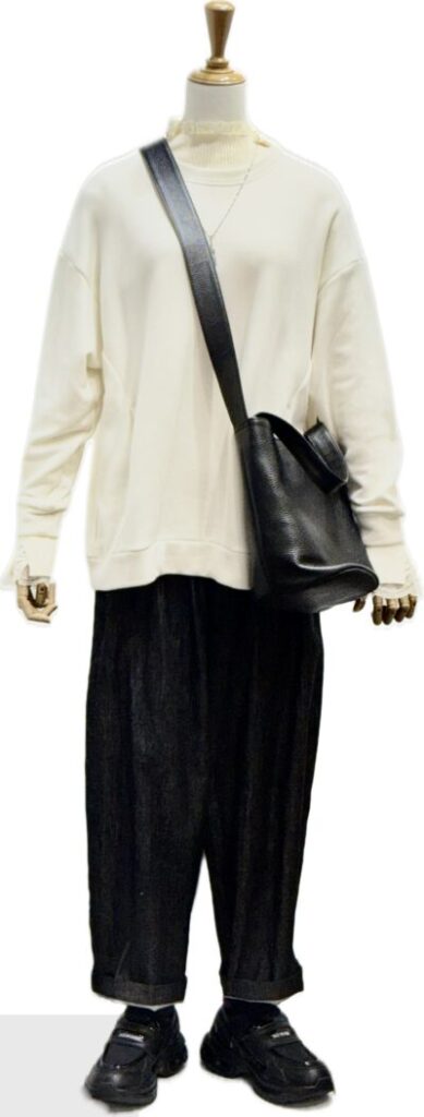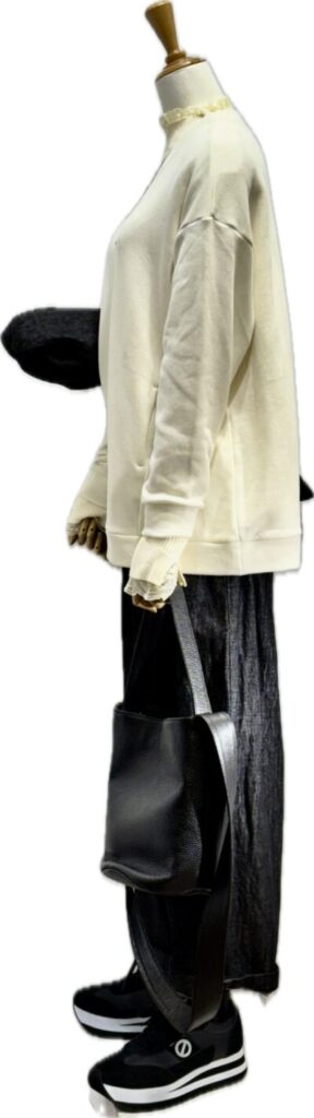 シルエットも締め付けない。過ごしやすい一方、手抜きにも見えない