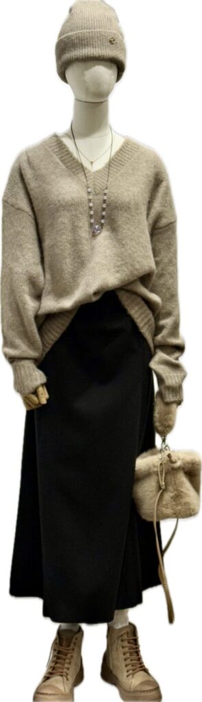 ニット帽とVニットのペア おしゃれっぽさのバージョンアップ