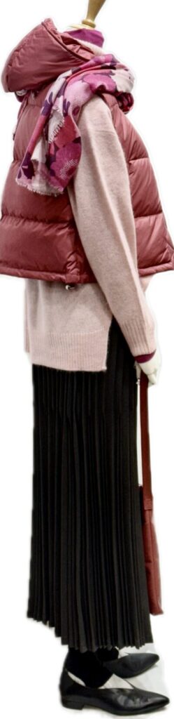 ショートダウンベスト 綺麗色ビッグストールプラスして