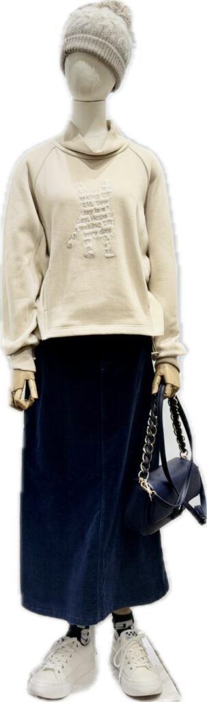 ニットの苦手な方の味方、 袖丈長め リブ仕様で ふんわりスリーブ