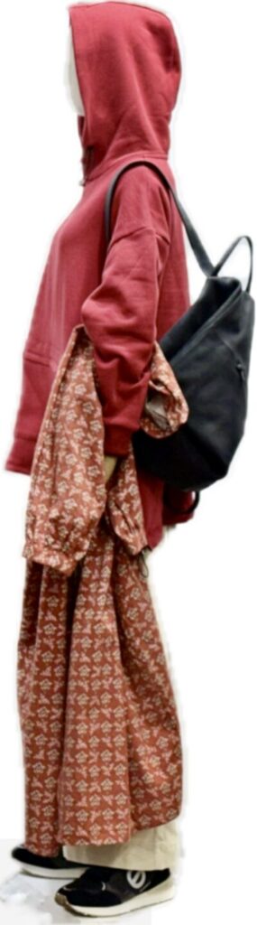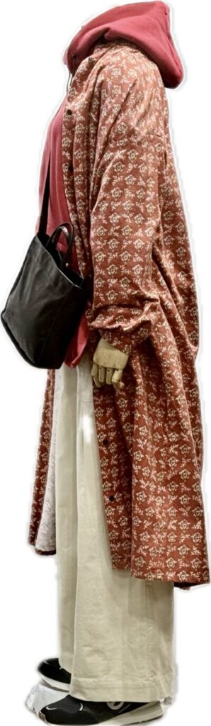 SADAY cottonネル布 バディクプリント レットオレンジシャツワンピ