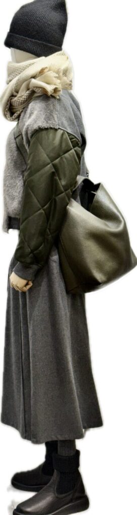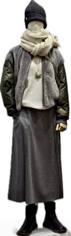 Ma1のブルゾンを綺麗めにアレンジ いまどき・・・フェイクファーのベストにキルティングした袖のドッキング Ma1ラインのブルゾン
