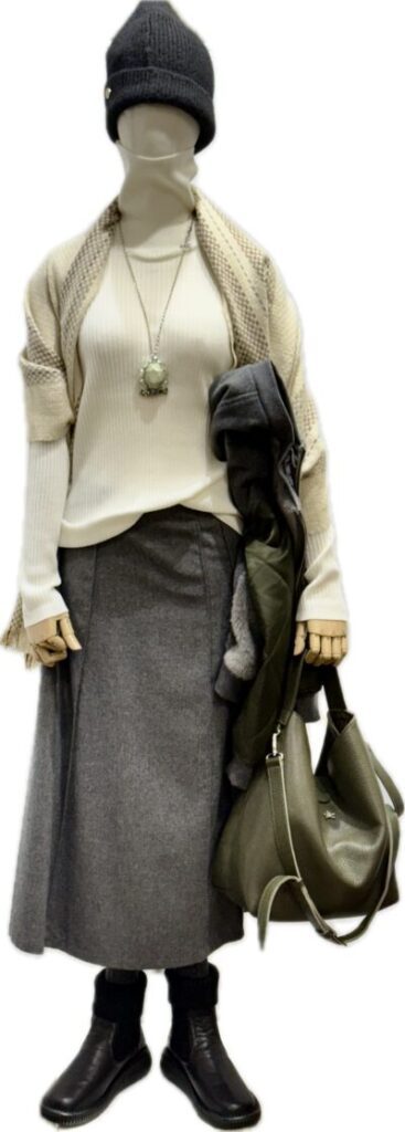 ちょっとエレガント 足元はニットブーツで 暖かく