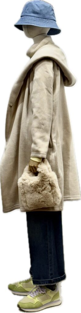 裏ボアの ベージュ フーディコート まだまだこれくらいでいけます。