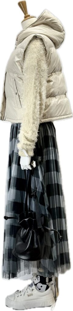 チェック柄のチュールプリーツ オールしシーズン仕様
