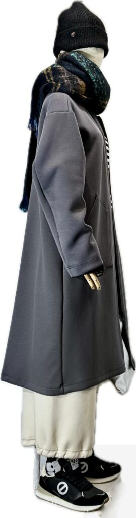 段ボールニットのコートジャケット 室内でもそのまま着ていられる