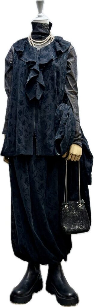 甘過ぎずフリット胸元をカバー オソロのバルーンロングスカート