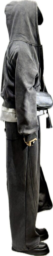 ストーンウォツシユ加工 ブラックフード スエットパーカー&ワイドラインのスエットパンツ